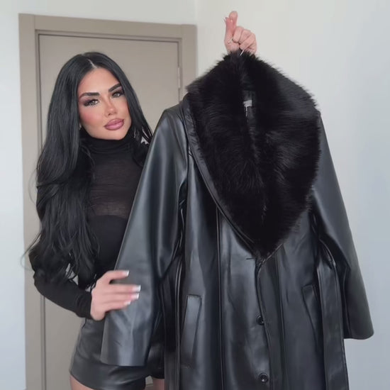 Palton elegant , completat cu blană pufoasă (detașabilă)și un cordon reglabil în talie, ce evidențiază silueta. O piesă versatilă și călduroasă, perfectă pentru un look rafinat în sezonul rece.